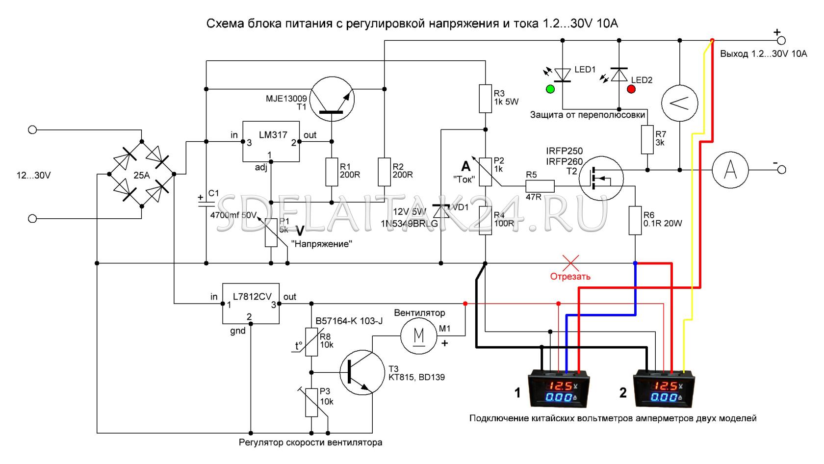 Автор схеми на відео пояснює як працює схема при обмеженні струму а також від переполюсовки.
